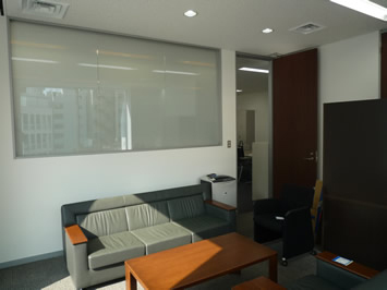 透明性と遮断性が優れており、透明なガラスの間仕切りを一瞬で遮断できます。