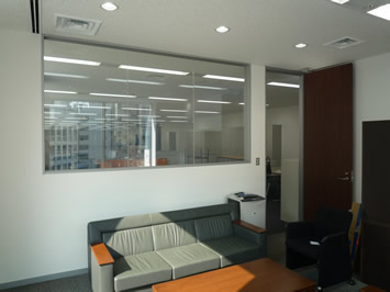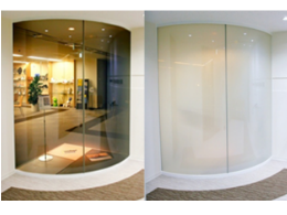 透明性と遮断性が優れており、透明なガラスの間仕切りを一瞬で遮断できます。